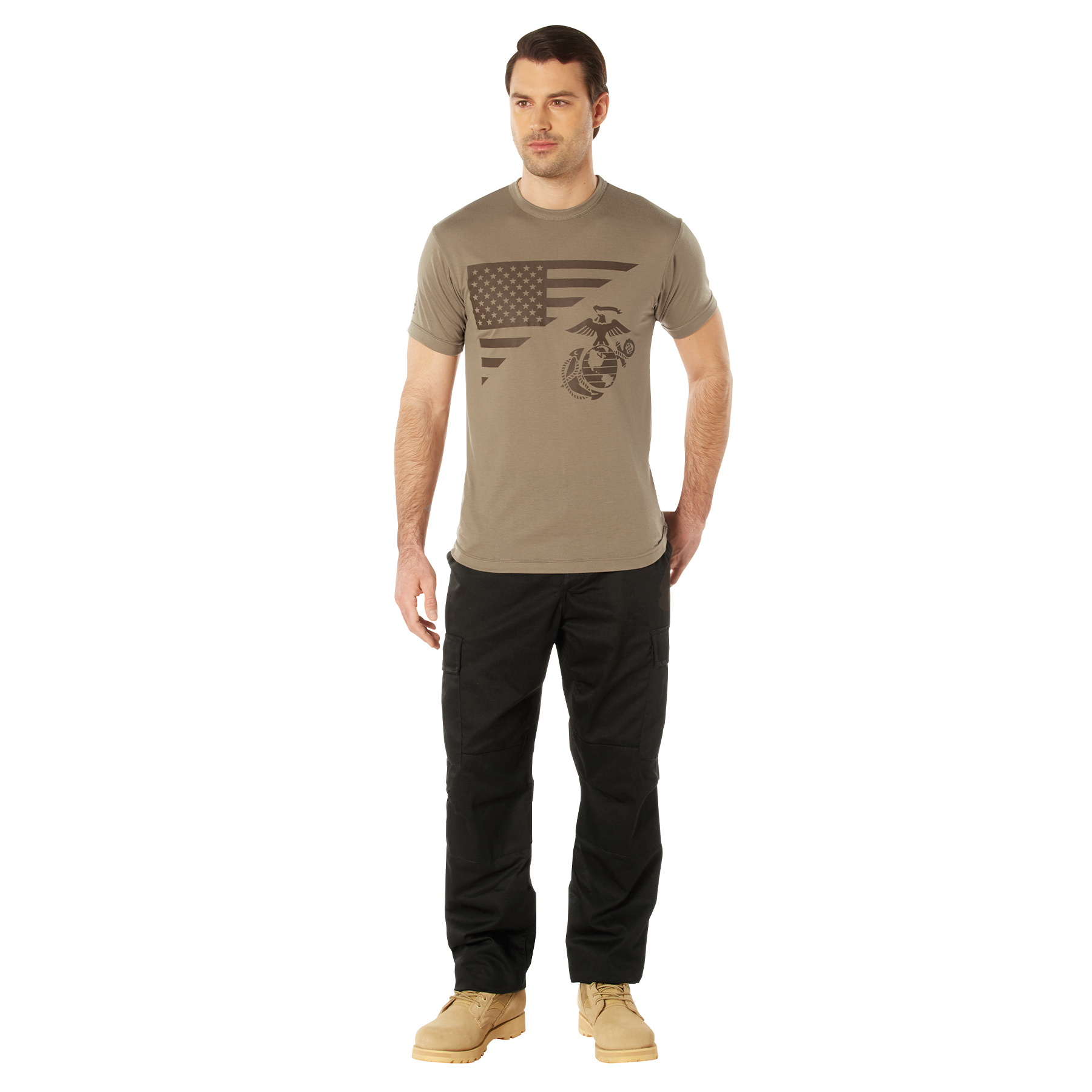 Rothco USMC Eagle, Globe, & Anchor Moisture Wicking T-Shirt – AR 670-1 Coyote Brown